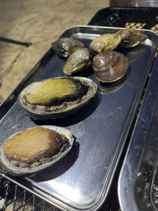 キャンプ場近くにの魚屋さんにより、魚介類等を